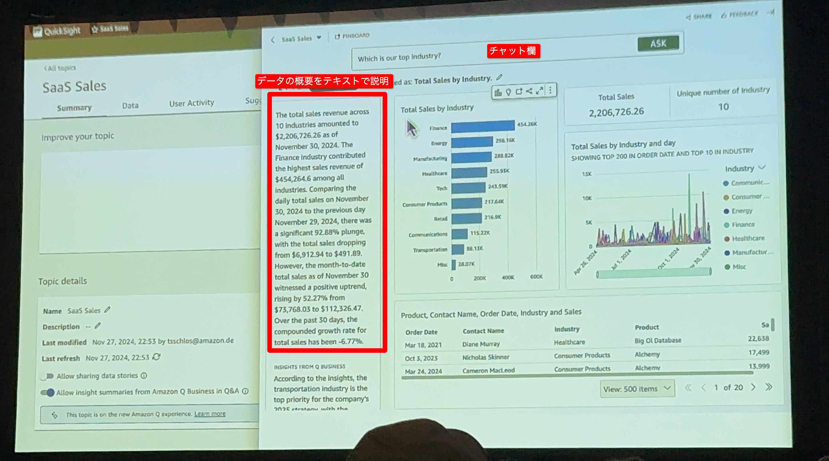 - “11月になにがおきた?”ブラックフライデーですね。と分析結果を答えてくれる。