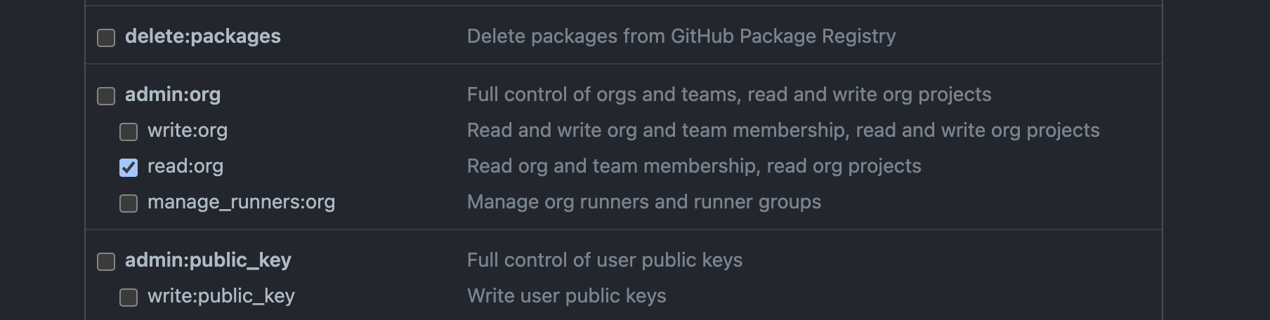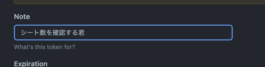 Noteに内容と、admin:orgのread:org権限を付与してトークンを取得します。