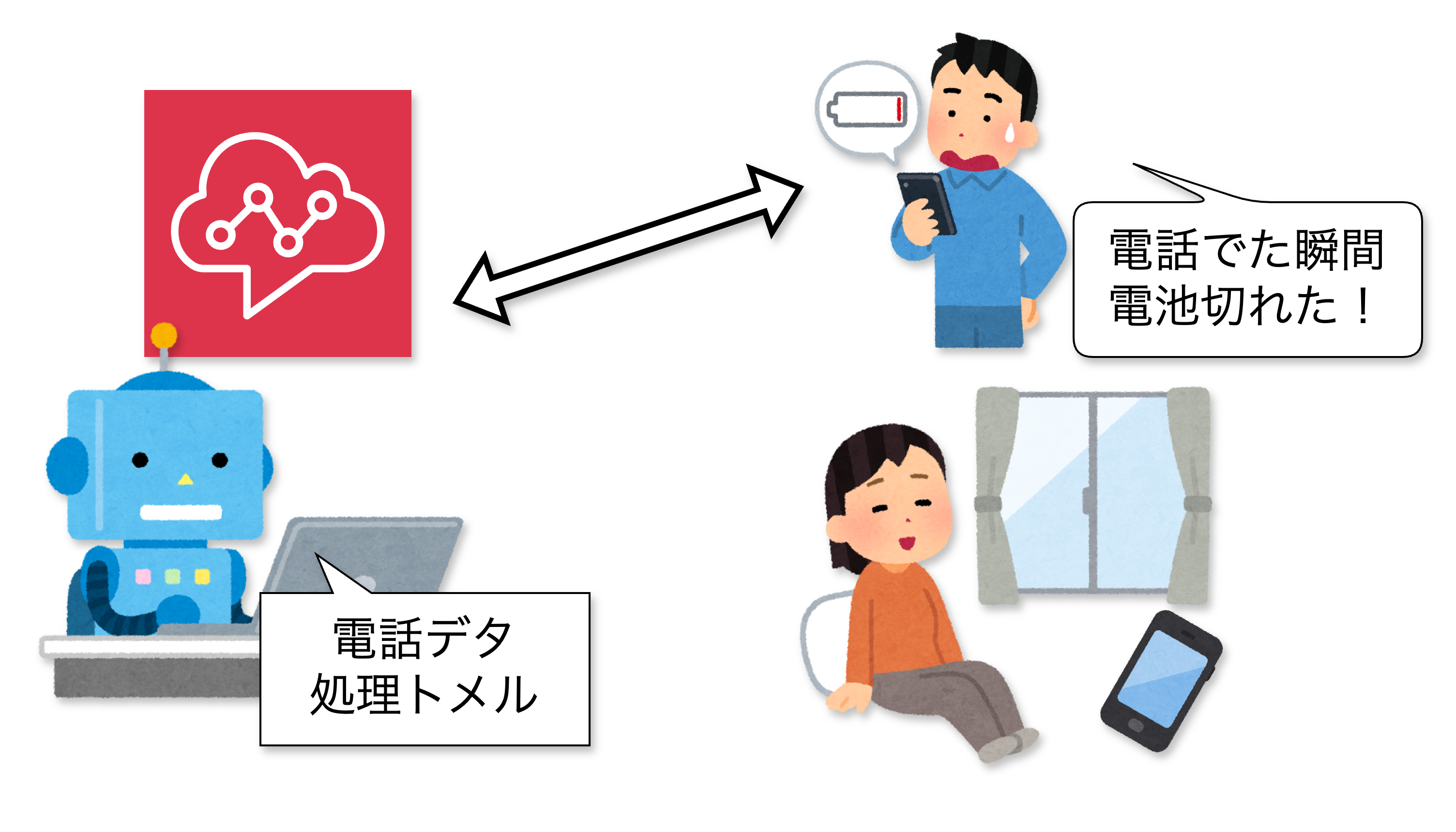 - 電話に出たが、自動音声を聞く前にバッテリーが切れてしまった。