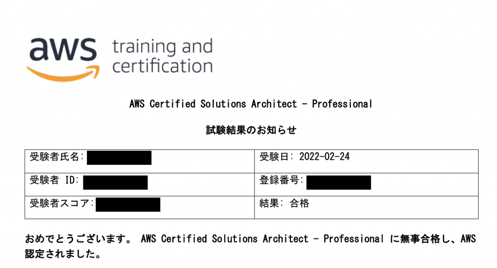 AWS Certified Solutions Architect - Professionalに合格しました