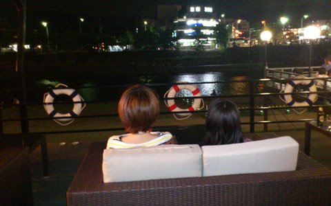 打ち上げで川床に